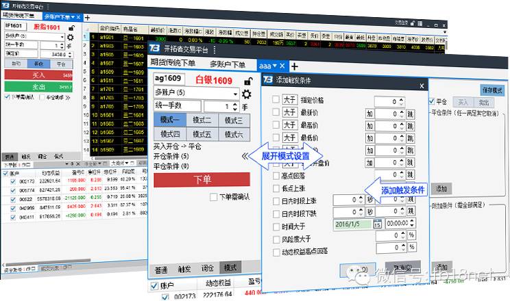 件,灵活设置个性化模式交易,实现自动开平仓,及时止盈止损