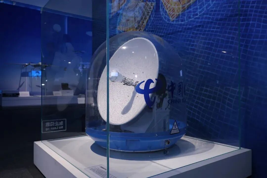 在展区,中国电信全面展示了陆海空天全覆盖,积极发展新一代信息通信技术,共绘空天地一体化发展新篇章的电信力量。