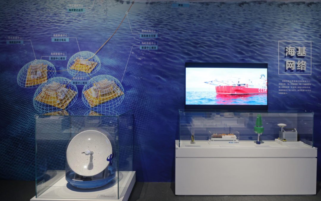 在海基网络展示区,循环播放着中国通服海缆船作业的情景,该船只运用科技力量,可胜任远洋、深海等海缆施工维护作业,打造了具有国际竞争力的海缆建设和维护力量。
