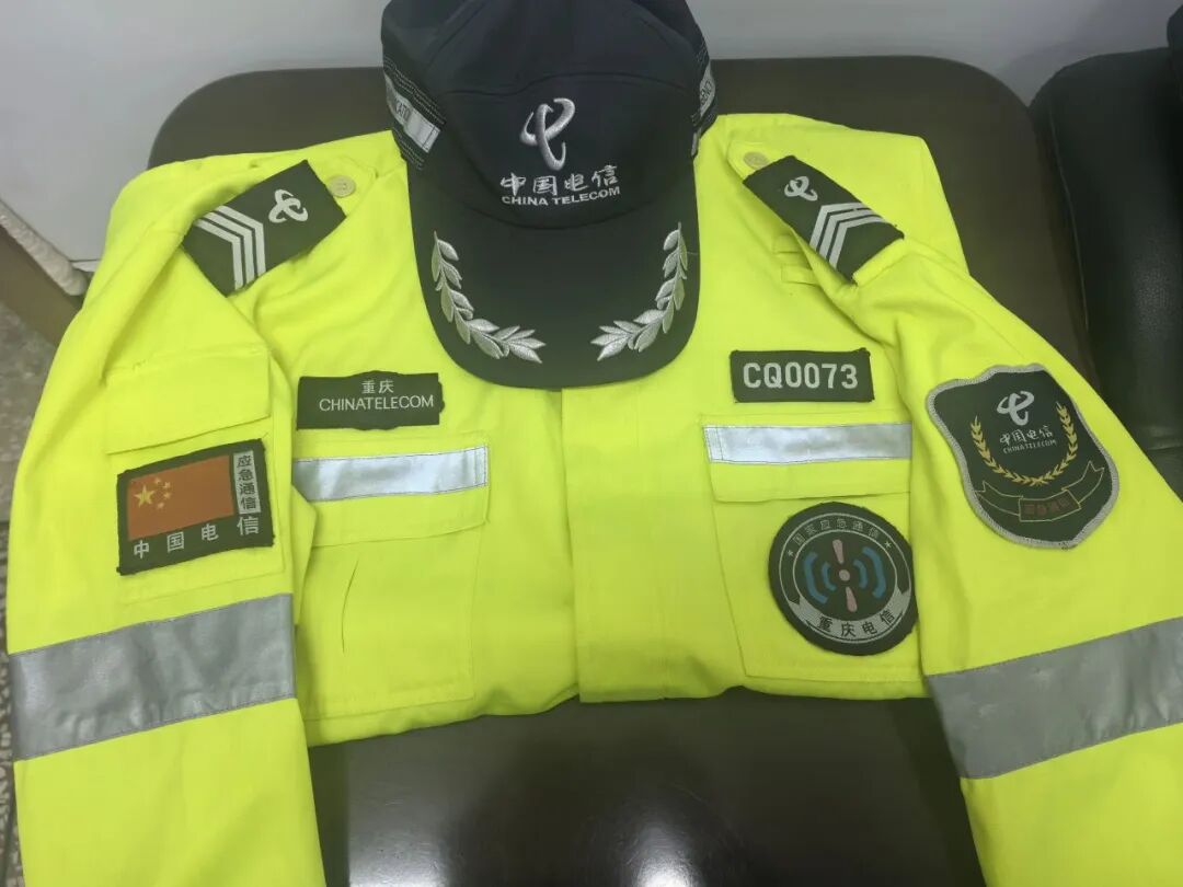 眼前这套服装,不仅是通信队员的“战袍”,更是他们无畏逆行的见证。它采用高强度耐磨面料,具备防风、防水等特性,能有效应对各种恶劣环境。醒目的荧光条和反光标识,确保队员在夜间或复杂地形中也能被快速识别。