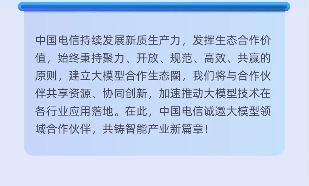 导读:欢迎加入中国电信大模型生态伙伴 领航智能产业新变革