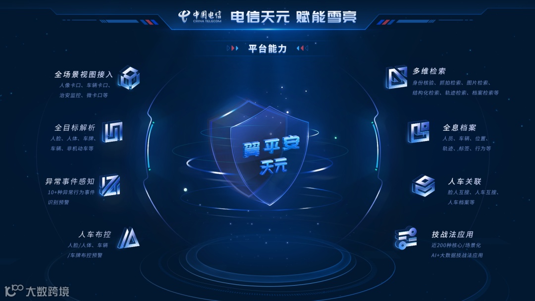 在应用能力方面,翼平安云脑·天元视图智能化应用平台面向公安事前管控、事中布控、事后研判的全业务流程智能化诉求,基于电信自研视觉AI能力及海量大数据模型,提供包括全场景接入、全目标解析、异常事件识别、百万级重点人车布控、亿级智能检索、全息档案、人车非多要素关联及150+场景化技战法在内的八大闭环应用能力,全面提升警务视图智能化水平及基层市域治理效率。