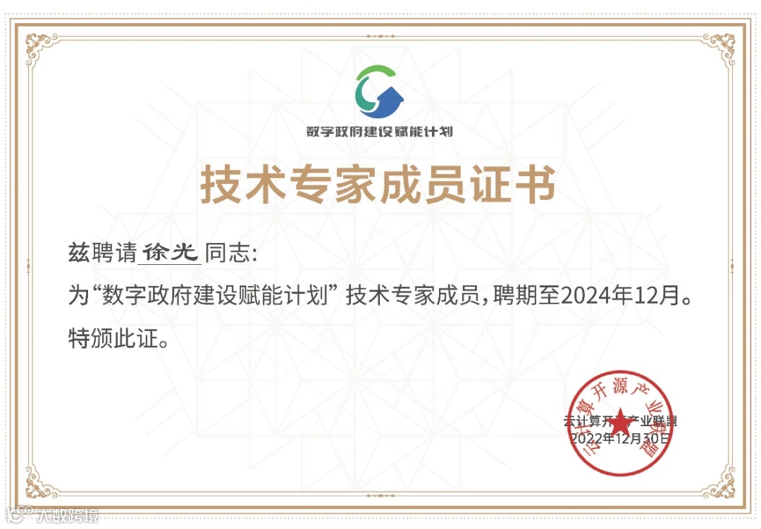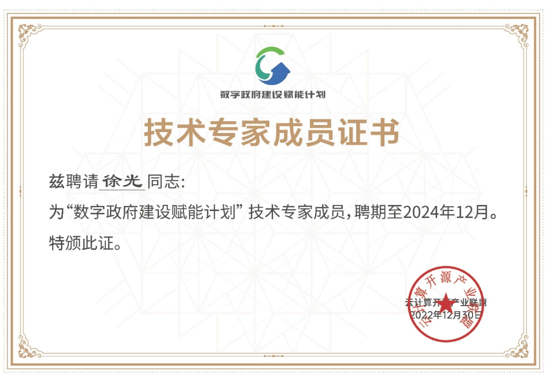 中国电信集团政务行业拓展部经理徐光被评为第五批数字政府建设赋能计划技术专家。