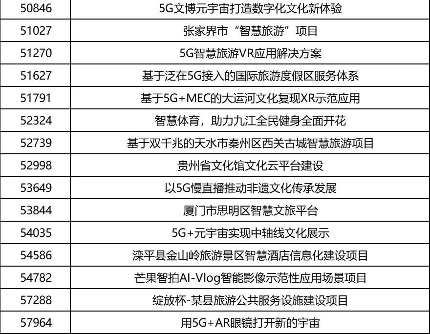 现将第五届“绽放杯”5G应用征集大赛智慧文旅(文宣方向)专题赛入围复赛名单(排名不分先后)公布如下: