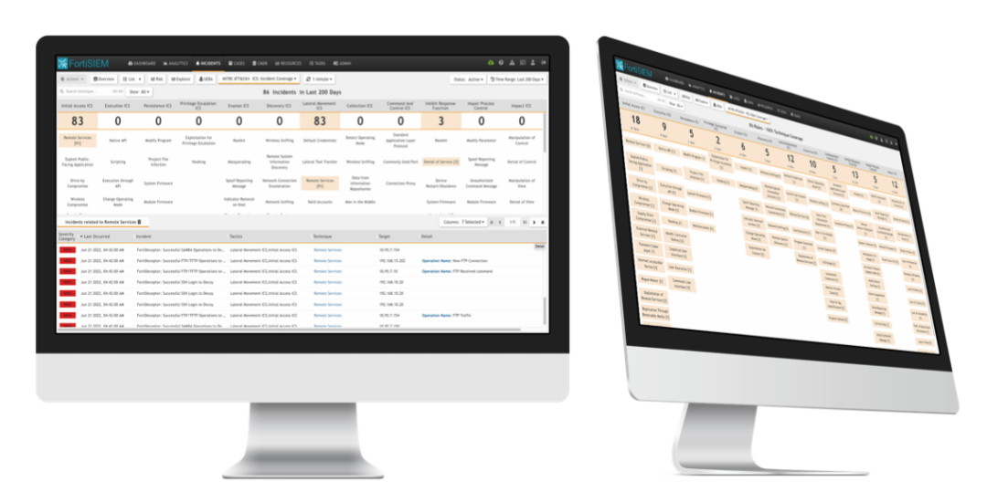 安全信息和事件管理(SIEM)技术,将 IT/OT 可见性、关联、自动响应和修复等优势功能全面整合至一个可扩展的解决方案,助力企业轻松简化网络管理和安全运营的复杂性,有效释放资源、优化漏洞检测,快速识别并拦截入侵行为。Fortinet FortiSIEM 和 FortiSOAR(安全编排、自动化和响应解决方案,面向 SOC 环境的先进技术),可对 OT 环境进行工作流建模、编排,并根据普渡模型快速启用修复,自动执行多种常见安全操作。此外,支持轻松整合 Mitre Attack ICS 框架,帮助安全团队评估安全覆盖范围,分析结果可用于 OT 环境安全事件的调查和报告。