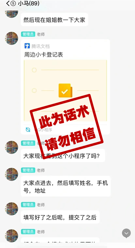 小A刷到免费赠送“小马宝莉卡片”的视频,遂添加了免费赠卡群,后被以“免费邮寄,需提供身份信息”为由,在群中登记了个人身份信息。