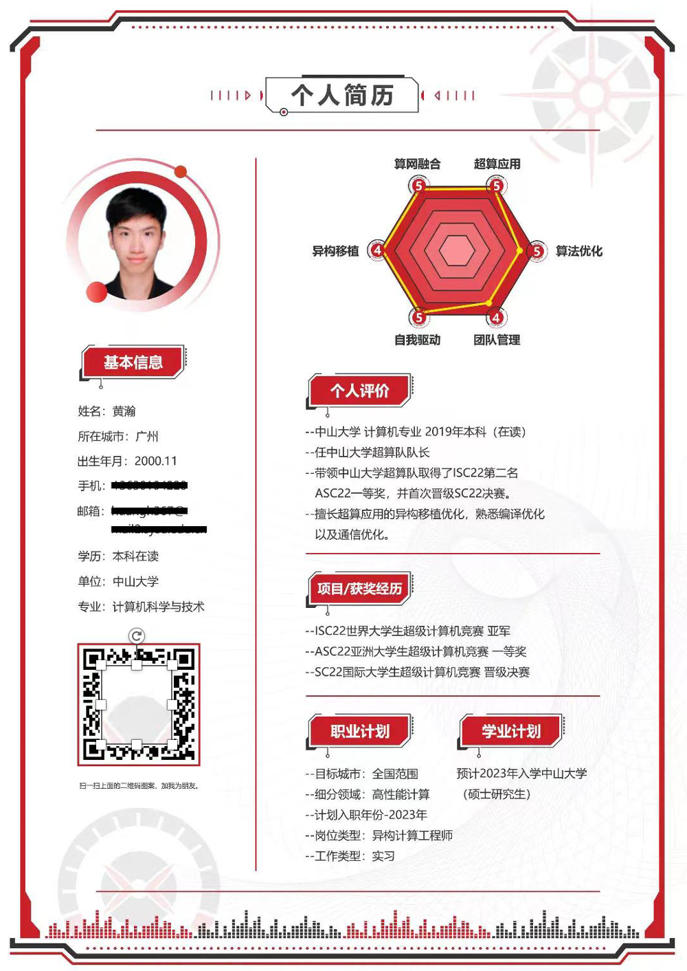 参展(求职)个人提交4项技术类专长、2项非技术专长,形成简单直观个人优势能力推荐(六边形战士),收集个人短期(两年)职业或学业规划,即目标高校、目标城市、研究方向、细分领域等(详见后附《报名表》)。定制版的个人简历在本展区滚动播放,展示内容按半年更新,在大会官网展示。