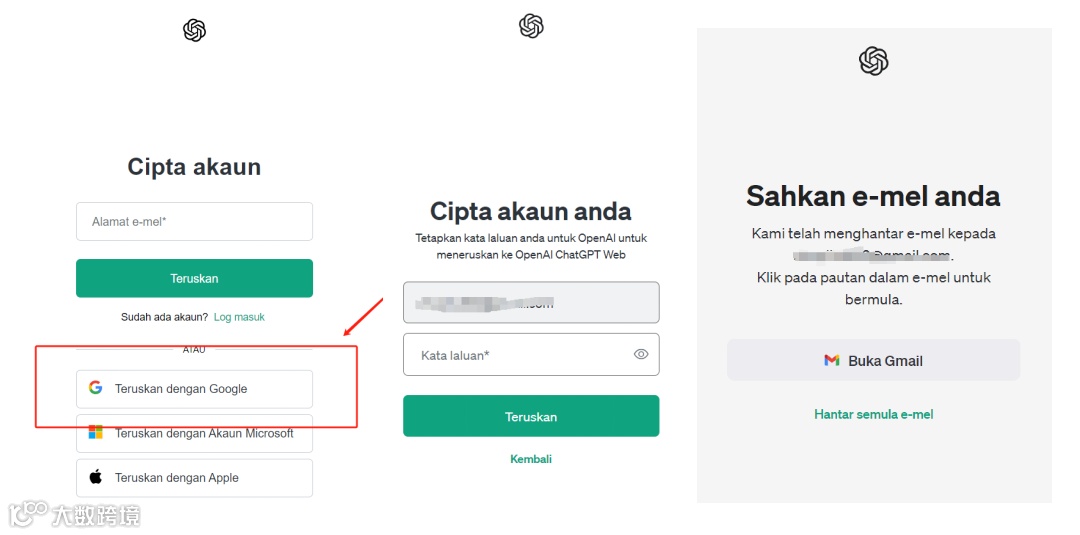选择谷歌登录,输入google等海外邮箱/海外手机号(这里切记国内邮箱是收不到验证码信息的),接下来设置密码,收取验证码后并填写;