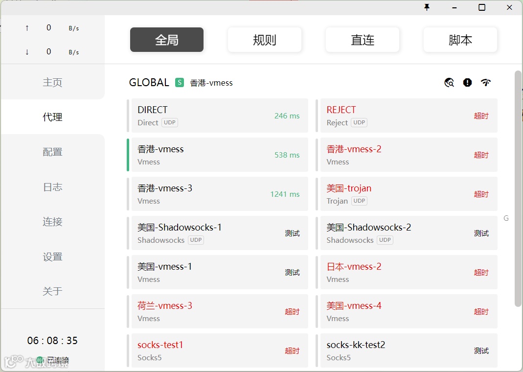 1、确保自身网络没问题后配置中转节点,随后通过https://whoer.net/等海外网站,确认一下网络情况