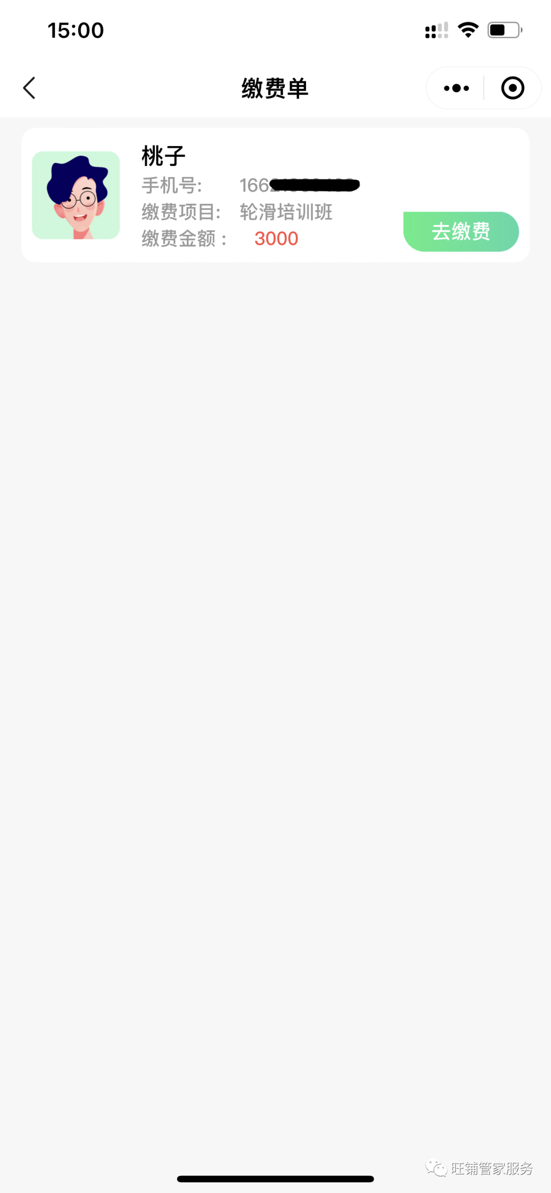 商家导入账单成功后,学员(消费者)即可在小程序—【我的】—【缴费单】中查看自己的账单信息并进行缴费。
