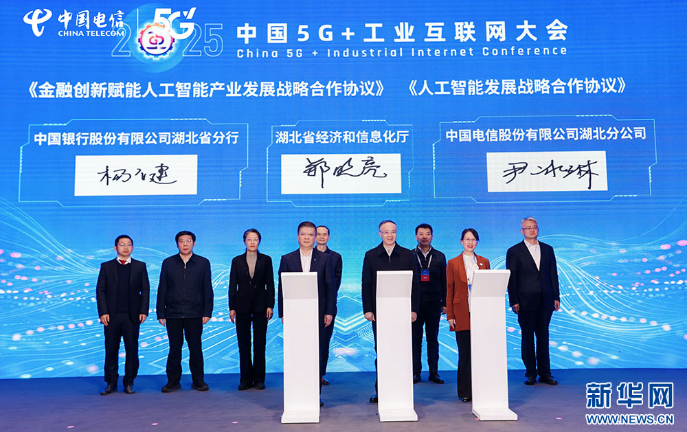 论坛现场,湖北省经信厅与中国电信湖北公司签署人工智能战略合作协议,旨在通过资源整合与模式创新,推动人工智能与实体经济深度融合。会上,中国电信湖北公司分别与京东科技、紫东太初签署合作协议,共同推进AI技术在低空经济、工业互联网等领域的融合与创新应用。