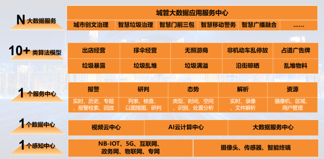 基于AI感知中心与数据中心,深度契合智慧城管业务,深入挖掘城管业务需求,突破城管违规执法现有的工作模式,打造智慧城管违规事件自动识别、立案、派遣、处置、复核的闭环流程,为城市管理提供准确的执法参考。