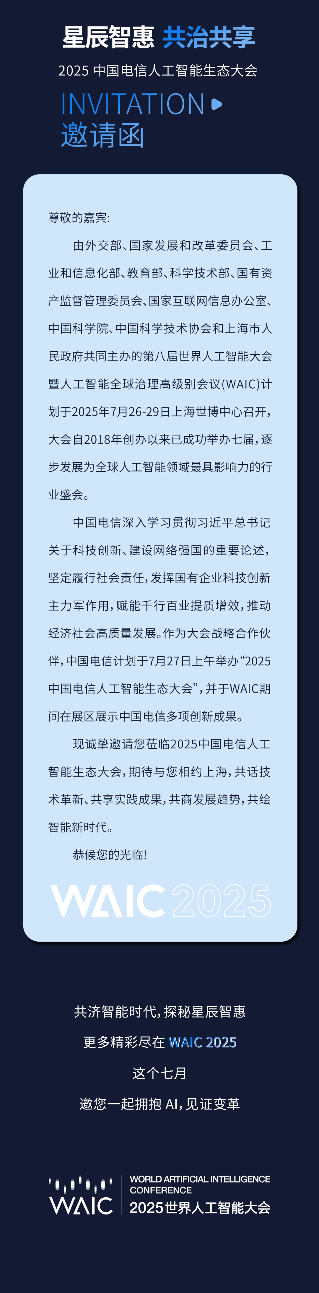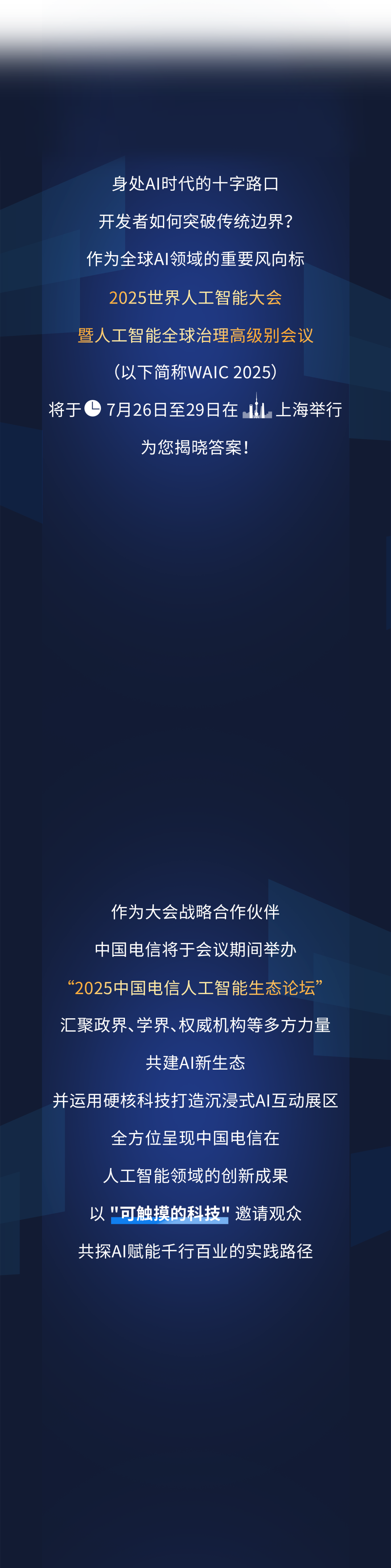 WAIC 2025必看指南|7月26日-29日,共赴中国电信 AI 生态盛宴!
