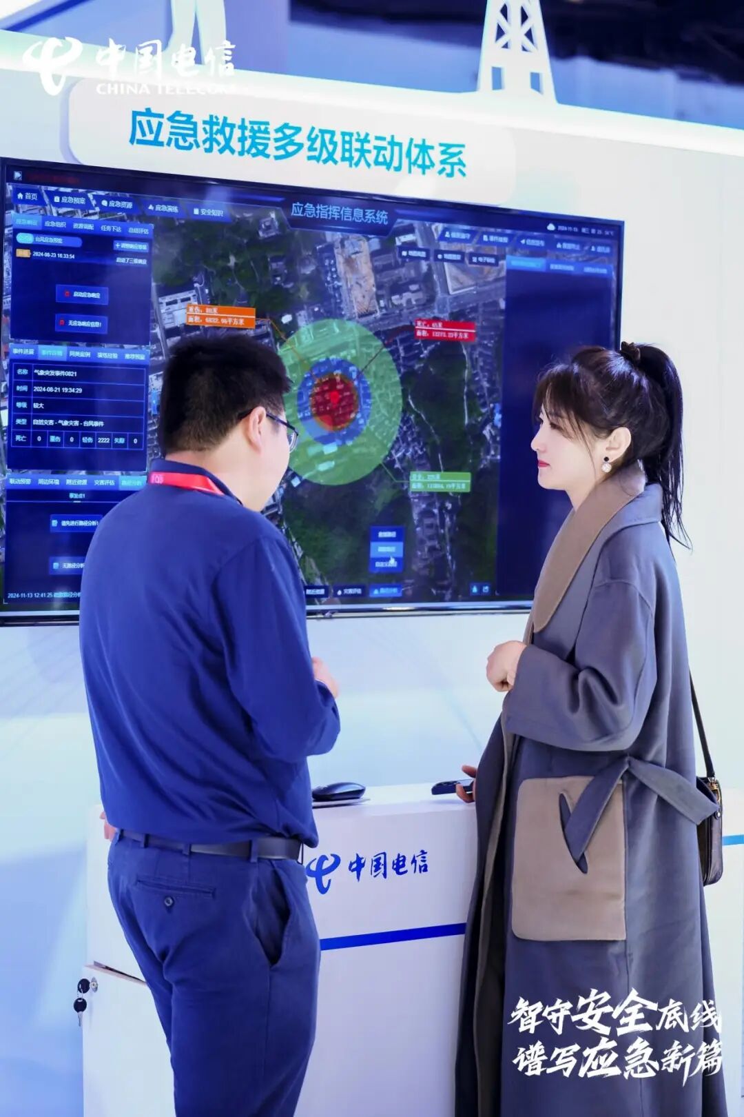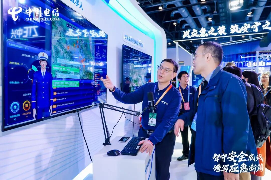 中国电信展区以“智守安全底线,谱写应急新篇”为主题,由集团应急行业事业部精心布置,并专门设置红色电信展项,弘扬红色电信精神,展现通信铁军风采,践行电信央企担当。展区总体规划数智应急、AI赋能提效、应急通信保障等11大主题板块,涵盖星辰应急大模型、应急指挥调度、智慧消防、智慧防汛、安全生产、战新业务等20余个展项。