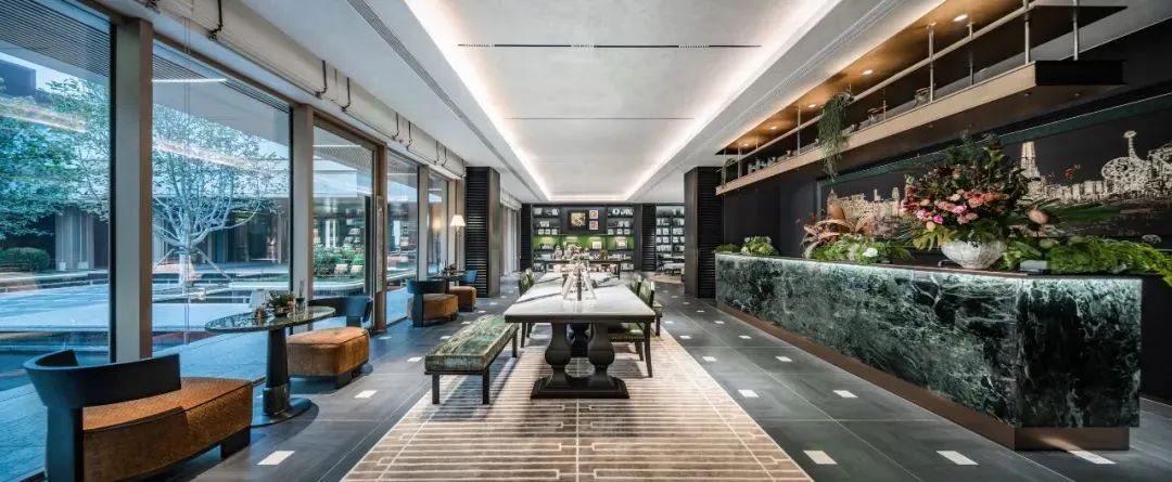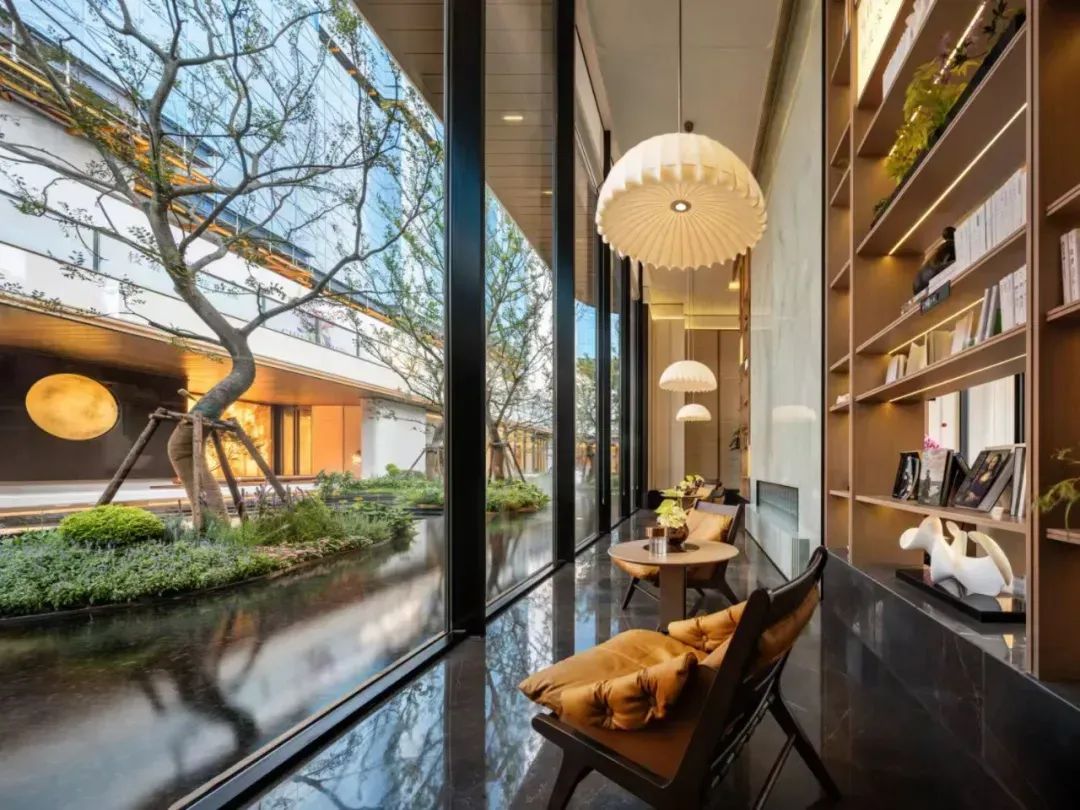 项目打破传统平面布局匠心构筑最高约8米台地立体园林。精心打造约600m下沉层叠水庭,引用斯卡帕艺术技法,整石铺就亚马逊绿奢石。