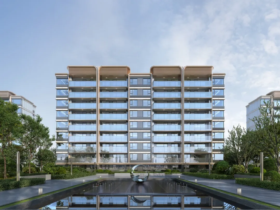 金茂锦棠的建筑立面,从项目LOGO中提取出生长线条,用于构建「向上生长」的建筑表情。以铝板在建筑外檐上勾勒出装饰框,远望下仿佛层叠的「流线画框」。