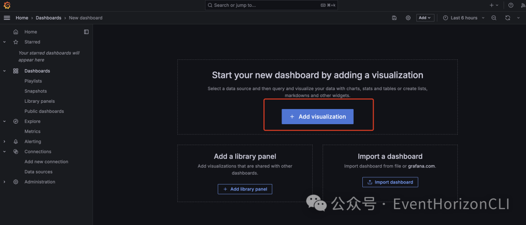 点击左侧的菜单,选择 Dashboards,即可创建一个 Dashboard。