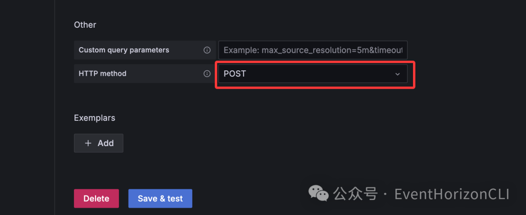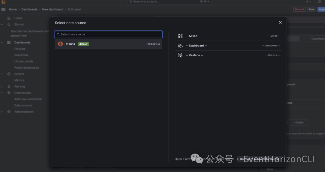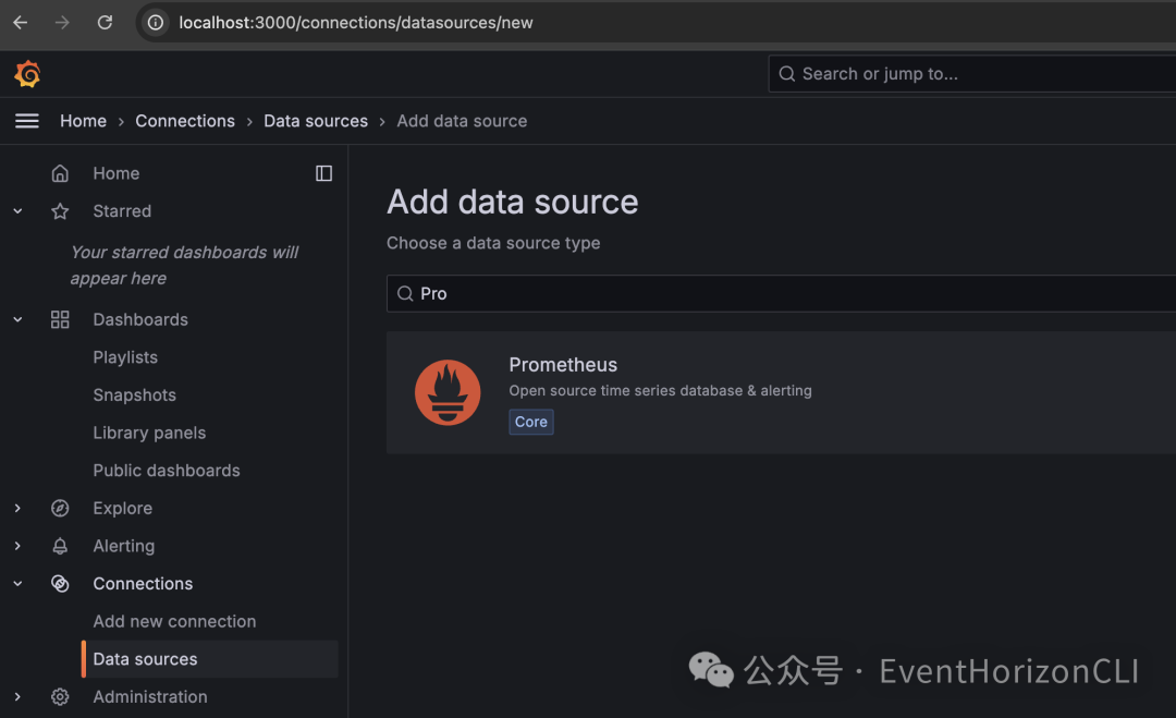 选择我们刚刚创建的 Prometheus 数据源。