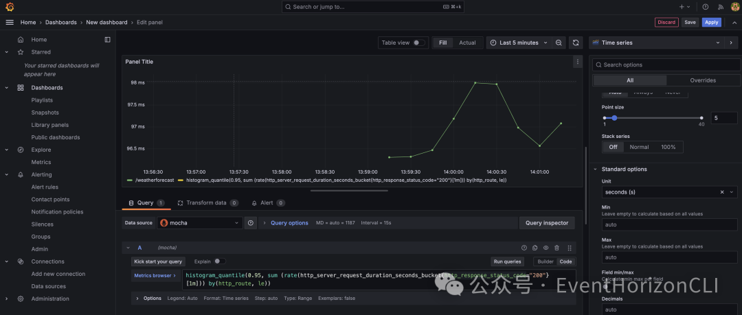 接下来就可以根据需要添加 Panel,展示 Metrics 数据了。