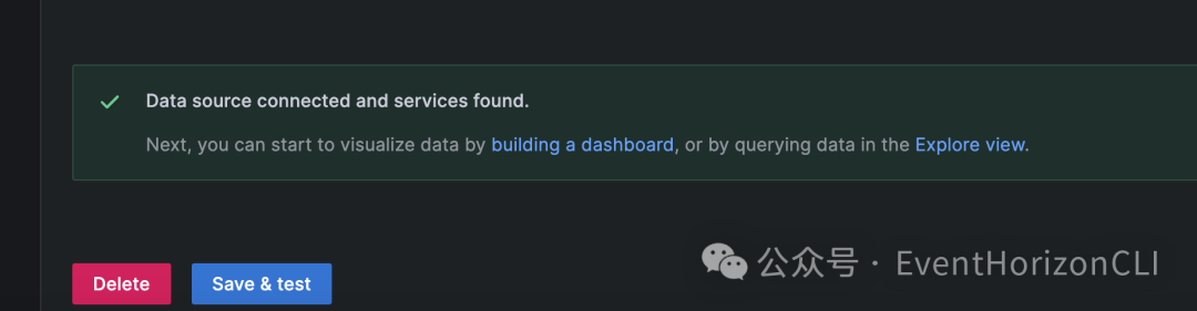 点击 Save & Test,如果显示如下信息,则说明配置成功。