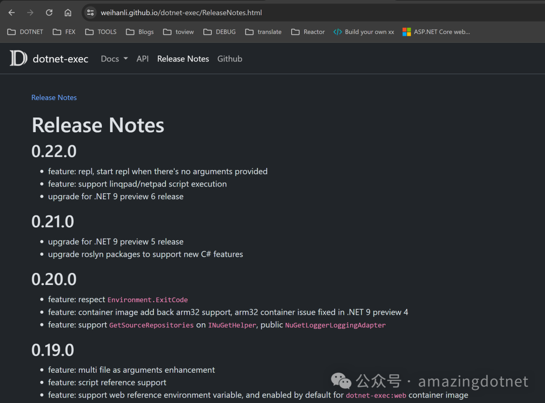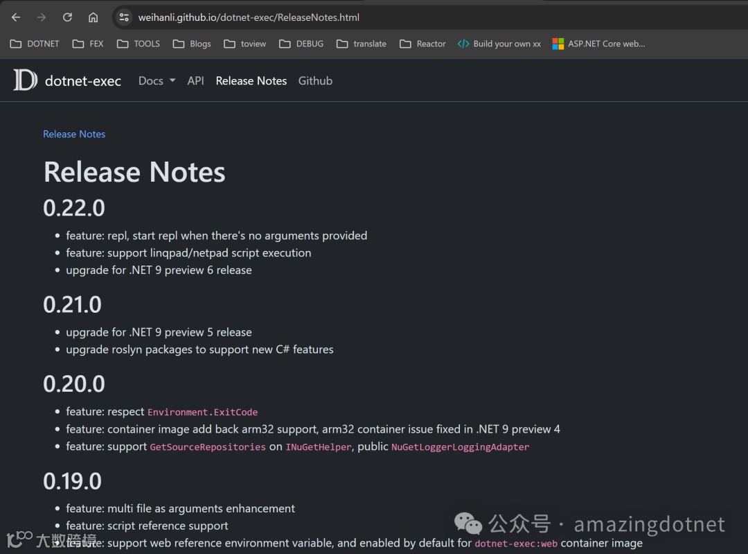 https://weihanli.github.io/dotnet-exec/ReleaseNotes.html -