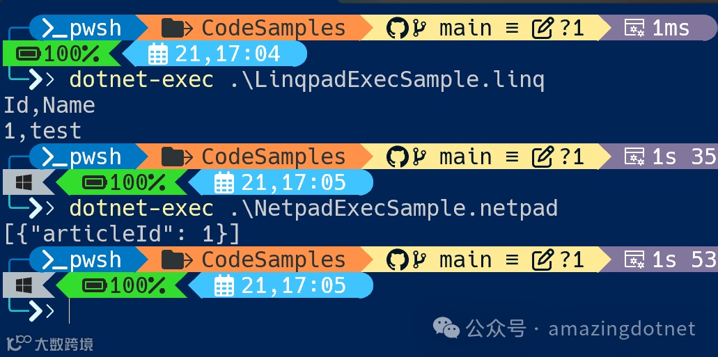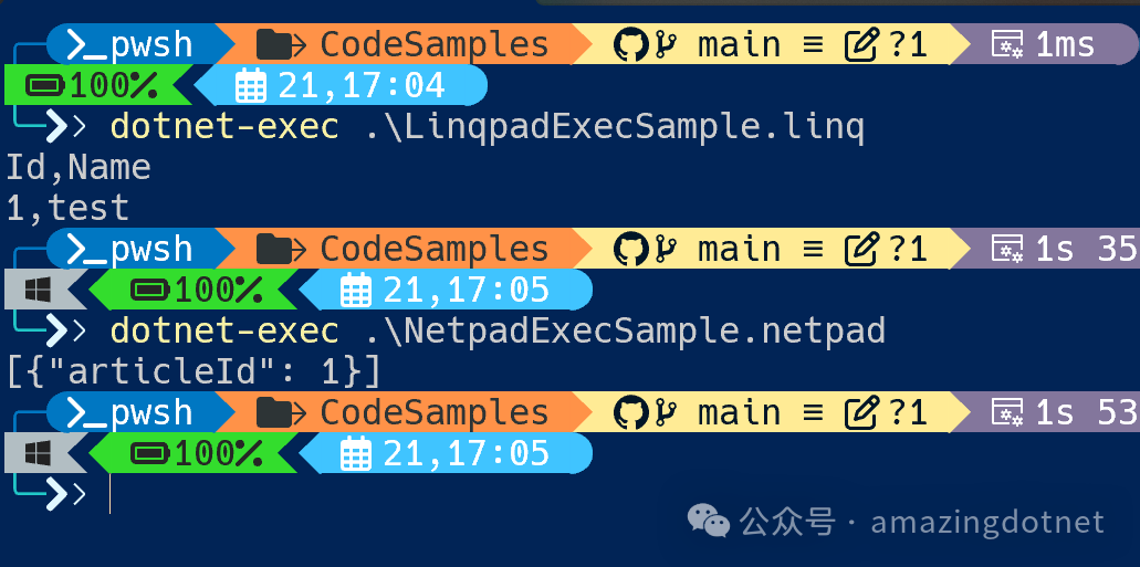 除了 C# 项目里的代码,有时候也会执行 linqpad script,最近也有一个开源的 NetPad,它的 script 和 linqpad 略有不同,也支持了一下,现在可以使用 dotnet-exec 来执行这些脚本,因为 Linq 有一些 linqpad 的扩展,目前只支持比较简单 Dump 其他扩展暂不支持,有需要的小伙伴也可以来欢迎来提 issue & PR