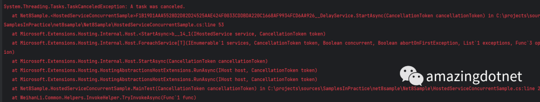 ServicesStartConcurrently/ServicesStopConcurrently 默认是 false,如果项目里有比较多的 HostedService 影响服务启动的时候可以考虑这一配置,但是如果想要设置为 true 需要考虑一下有没有启动顺序的要求,如果有启动顺序的要求则不适合使用这一配置,前面介绍的 IHostedLifecycleService 也会受这两个参数的影响,如果设置为 true 的话他们也是并发执行
