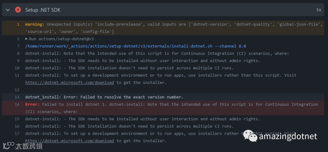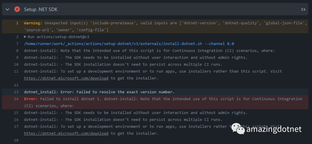 把 version 改一下就可以了,Github actions 稍有不同,Github actions 如果使用 8.0.x 这种version 会失败,会找不到 package 不清楚 Azure pipeline 是不是做了什么特殊的处理,Github actions 需要指定具体的版本,如下所示: