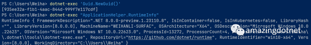 之前做的一个小工具 dotnet-execute 也提供了 .NET 8 的支持,感兴趣的话可以用它来尝试一些新的 API,可以使用 dotnet tool update -g dotnet-execute --prerelease 来安装