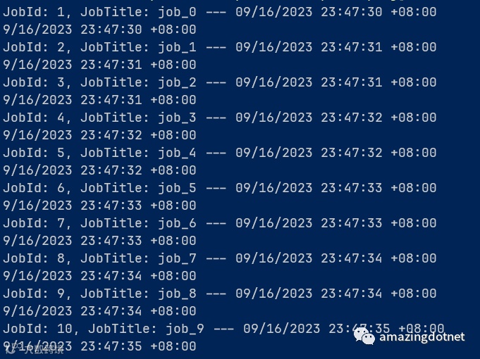 yield return new Jobs() { Id = i + 1, Title = $"job_{i} --- {DateTimeOffset.Now}" };