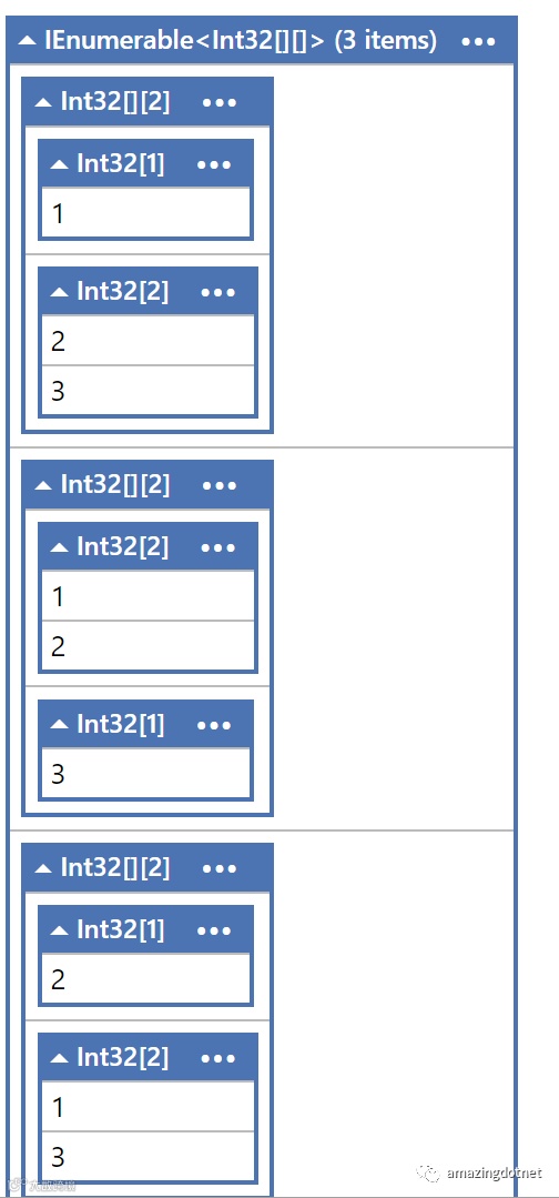 另外一种情况是将除了第一个元素之外的 N-1 个元素拆成 N 个数组,然后把第一个元素放在这 N 个数组中的一个,这样最后返回的还是 N 个数组