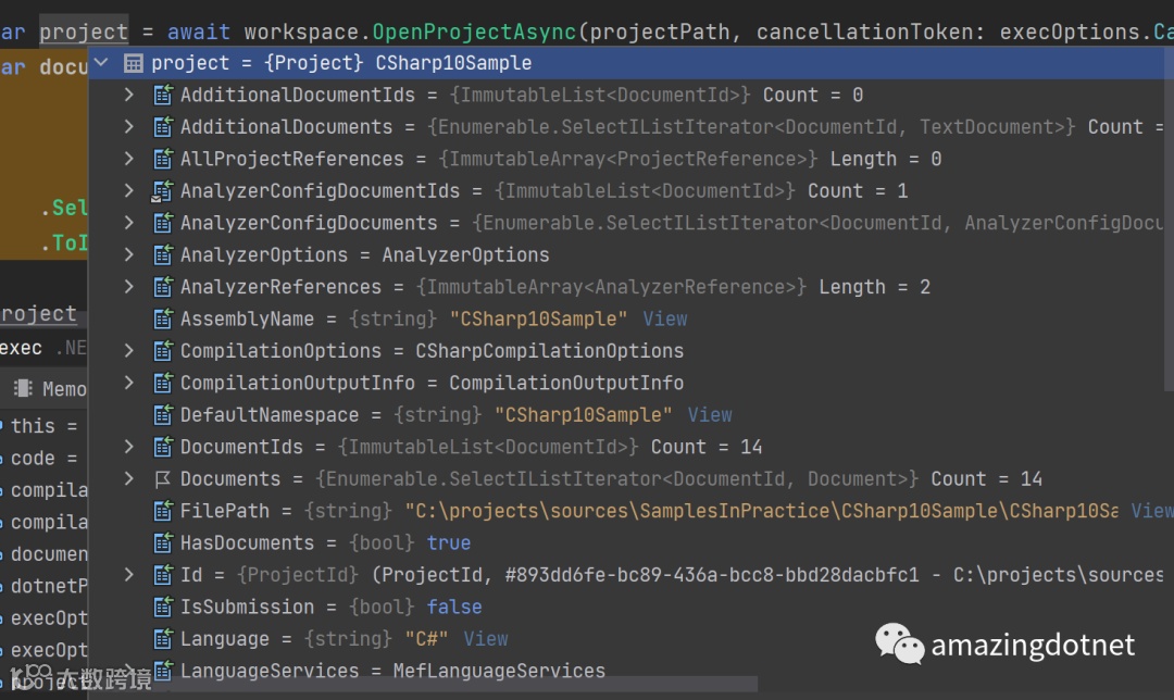 微软默认提供了一套基于 MSBuild 的实现,可以自动从项目文件或者项目解决方案文件中自动分析项目以及项目中的文件和引用进而构建一个工作区