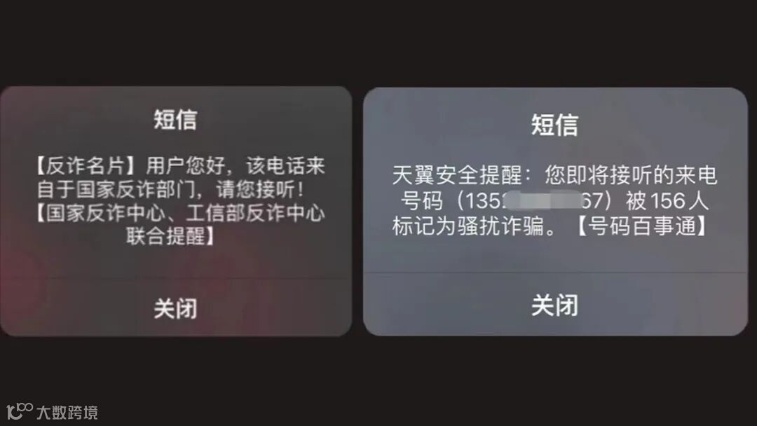 截至目前,已为3.6万号线的公安机关免费开通反诈号码,覆盖全国31省份,日均下发反诈名片近30万条。(左下图)通过大数据模型分析+AI+人工审核运营,截至目前服务电信移动用户3亿、下发用户闪信安全提醒10亿次。(右下图)
