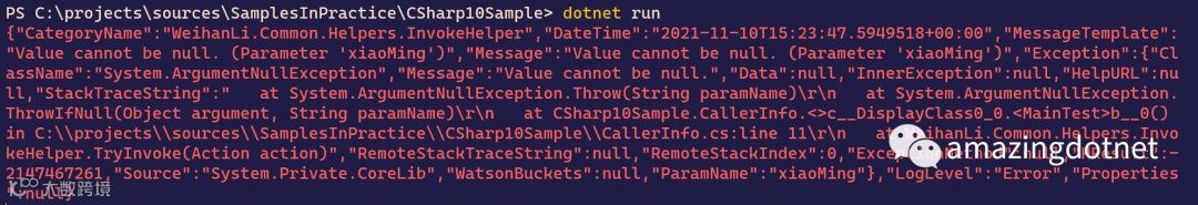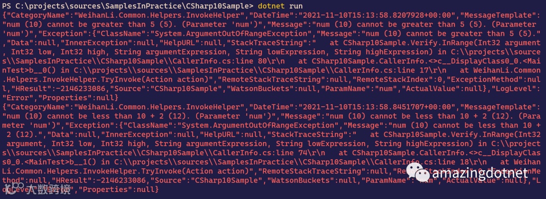 想使用上述代码测试,可以从 Github 获取 https://github.com/WeihanLi/SamplesInPractice/blob/master/CSharp10Sample/CallerInfo.cs