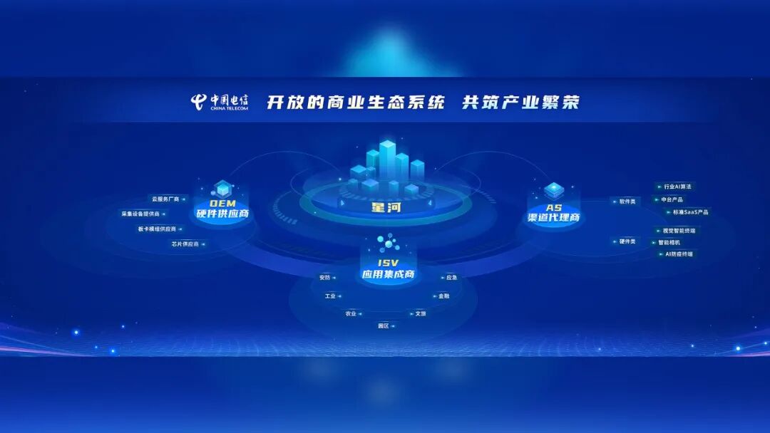 大会上,中国电信集团有限公司党组副书记、总经理邵广禄重磅发布了行业科技创新成果,其中,在星河·AI平台的发布环节中,他表示:“星河在一些关键技术领域取得了重大突破,当前已汇集了智慧城市、社会治理、工业质检、明厨亮灶、智能客服等众多场景化的解决方案,支撑500多个产业数字化项目落地,为行业数字化转型升级贡献力量。”
