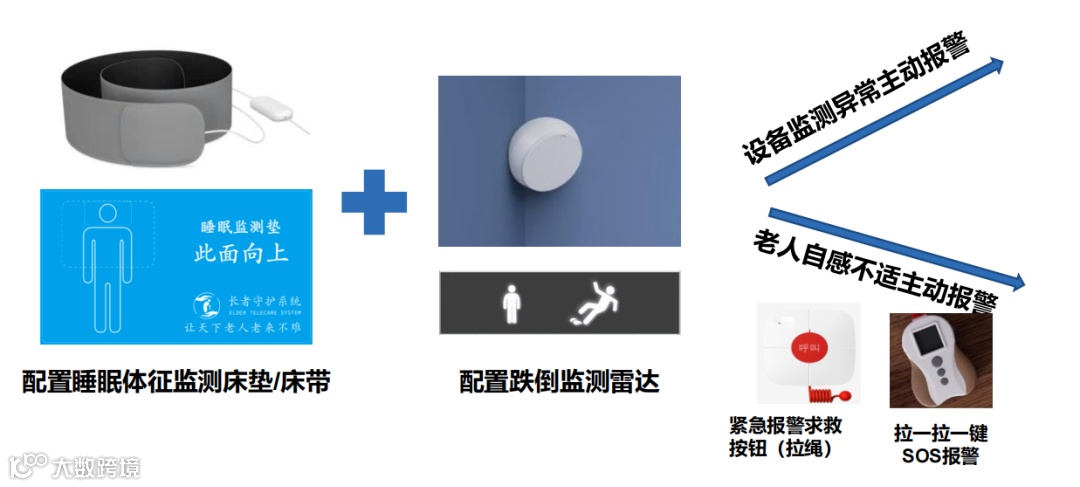 使用5G+精准监护设备,如果老人出现有心率过快或过慢、房颤、早搏、血压异常、血糖异常、睡眠质量等问题,全天候居家养老服务中心人员通过 5G+GPS 技术快速定位,立即上门查看老人情况,同时监测数据自动上传到云平台,由康养数据大脑进行分析并形成报告,作为诊断的依据。