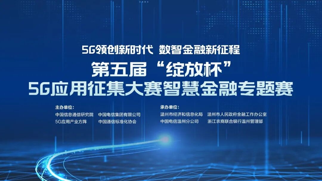作为第五届“绽放杯”5G应用征集大赛的专题赛事,智慧金融专题赛由中国信息通信研究院、中国电信集团有限公司、5G应用产业方阵、中国通信标准化协会主办,温州市经济和信息化局、温州市人民政府金融工作办公室、中国电信温州分公司、浙江农商联合银行温州管理部承办。