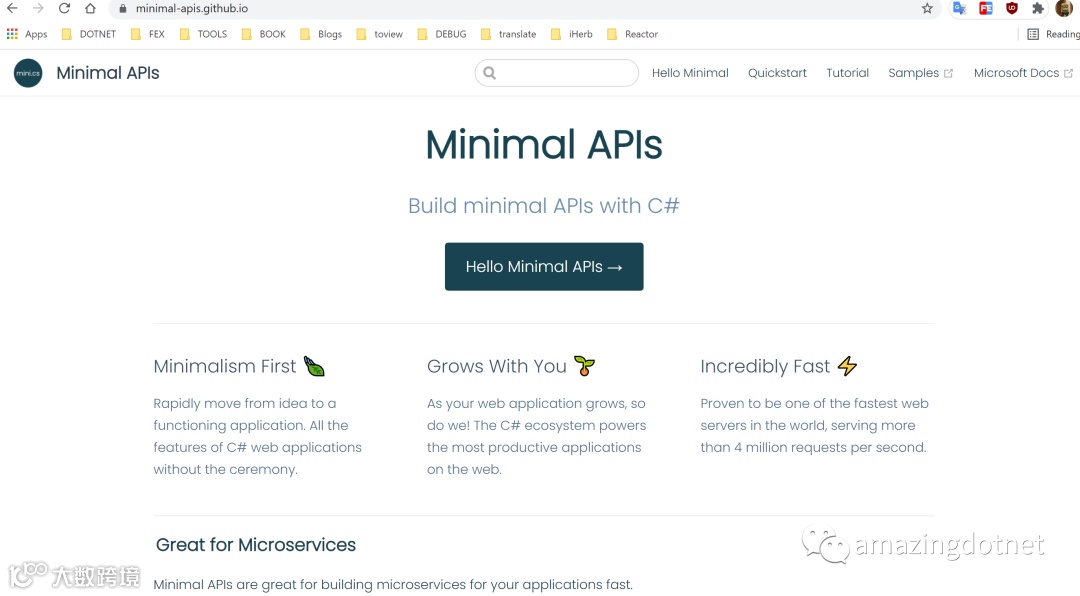 对于 Minimal API 的使用,微软专门做了一个文档网站来介绍其使用,可以参考:https://minimal-apis.github.io/