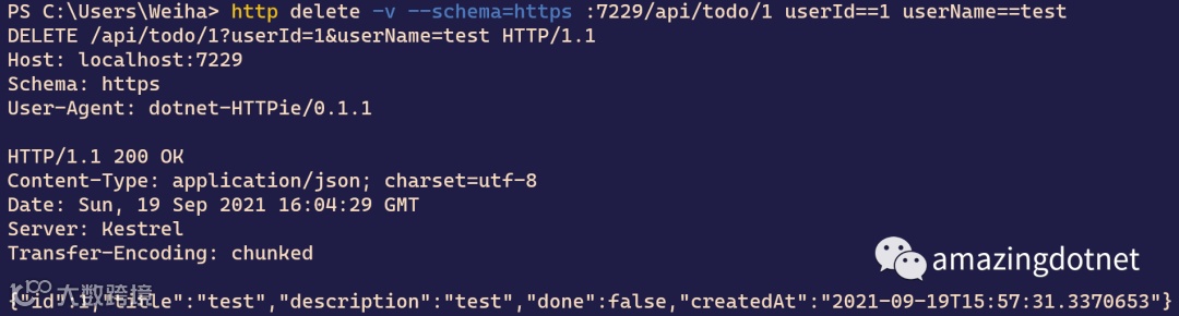 http delete -v --schema=https :7229/api/todo/1 userId==1 userName==test