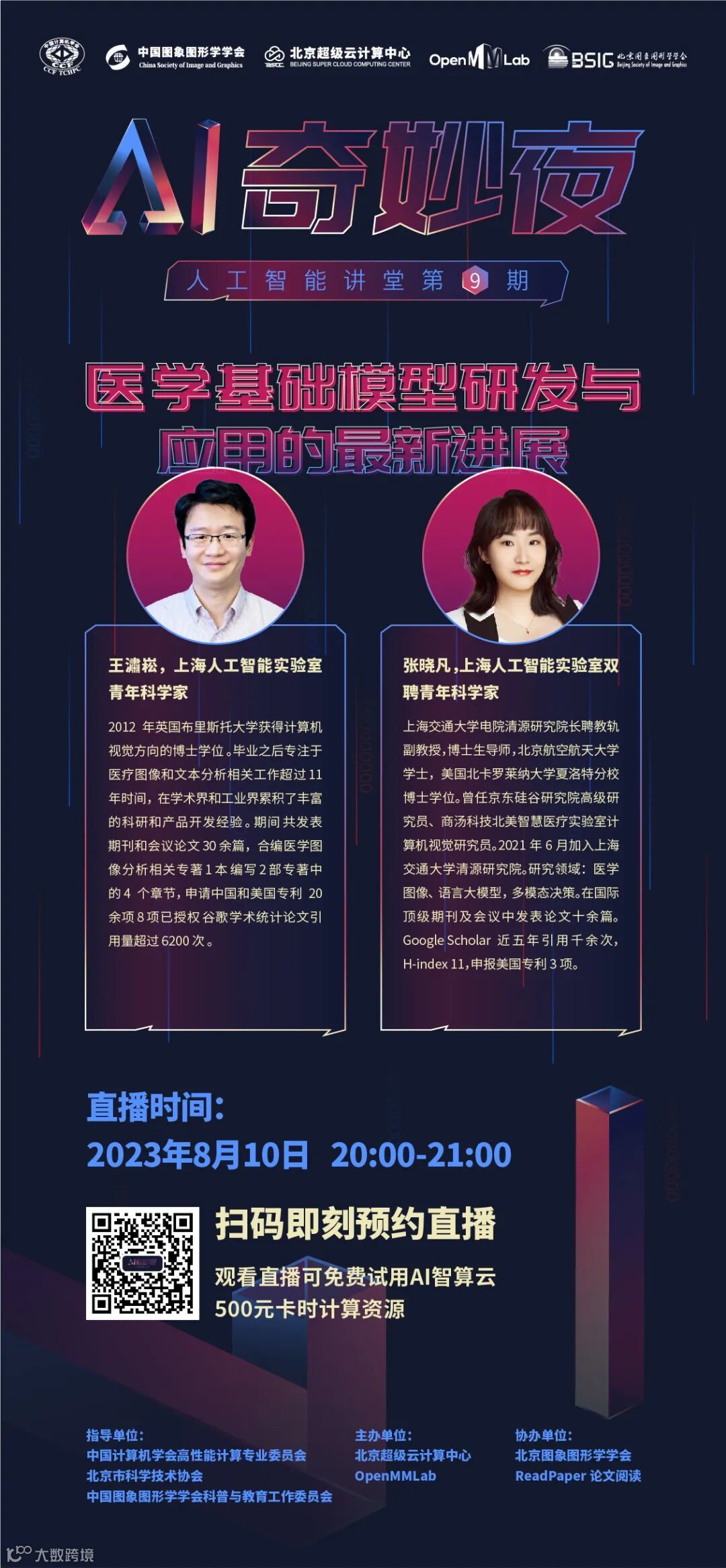 本期 AI 奇妙夜,我们邀请了来自 OpenMEDLab 的核心成员、上海人工智能实验室的青年科学家王潚崧博士以及张晓凡博士进行分享。