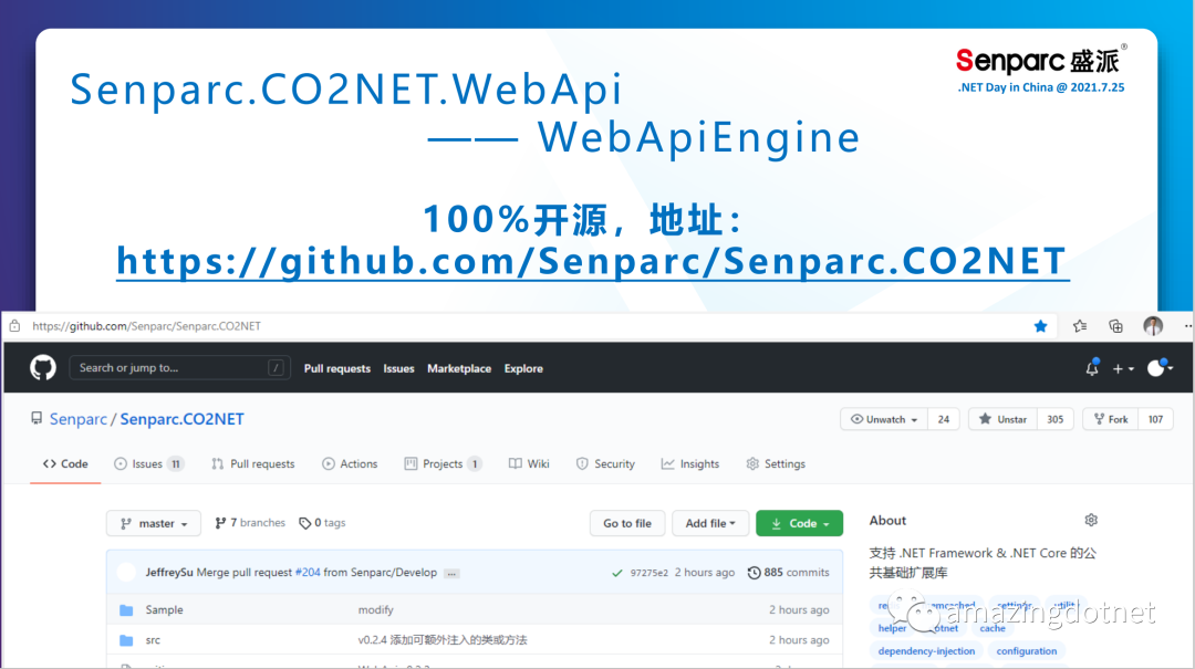 有需要可以到 Github 上详细了解苏老师他们的框架 https://github.com/Senparc/Senparc.CO2NET/tree/master/src/Senparc.CO2NET.WebApi