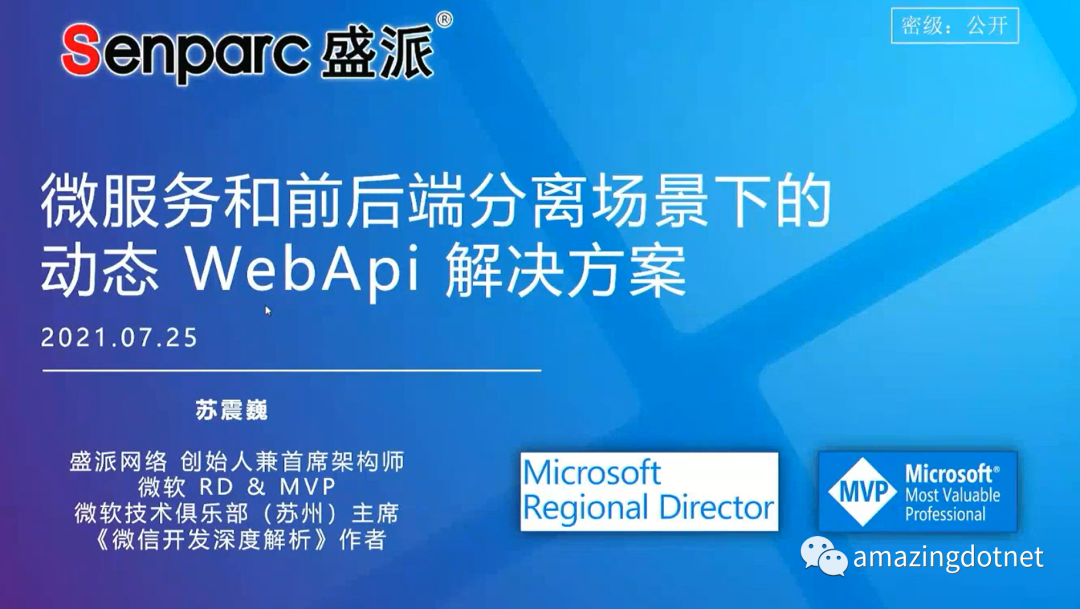 来自盛派的苏震巍老师为我们分享了他们总结出来的动态 WebAPI 框架
