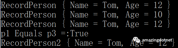 var p3 = new RecordPerson() { Name = "Tom", Age = 12 };
