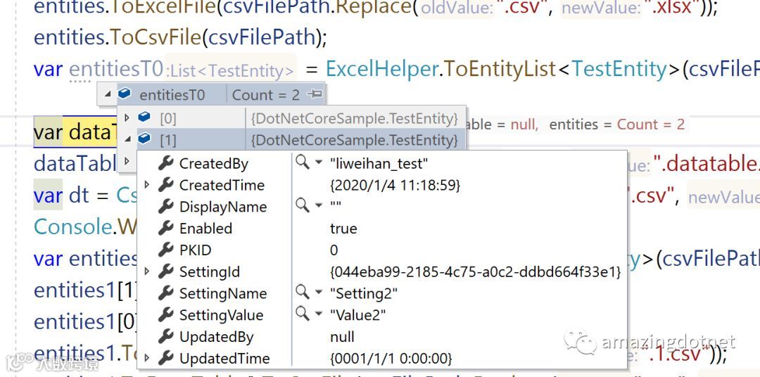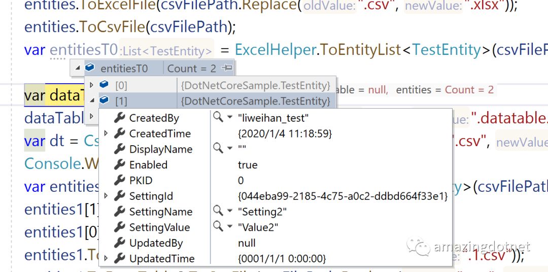var entitiesT0 = ExcelHelper.ToEntityList<TestEntity>(path);