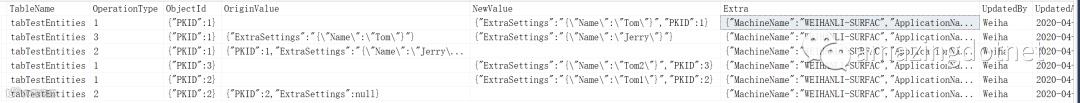 值得注意的是最后一条变更记录,这条数据的删除没有经过数据库查询,直接删除的,EF 不知道原本的除了主键之外的信息,所以记录的原始信息可能不准确,不过还是知道谁删除的这一条数据,对比之前的变更还是可以满足需求的。