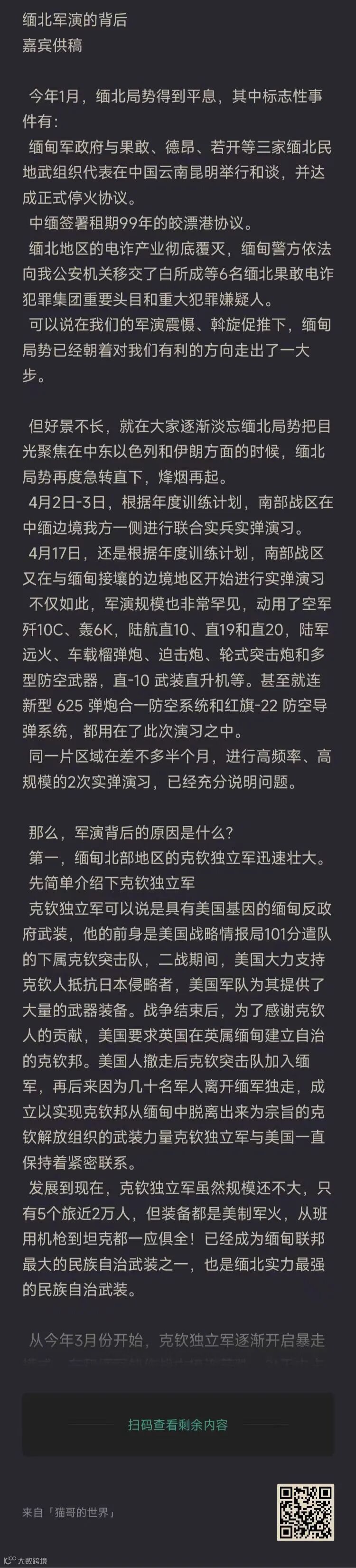 ——我们半个月在缅北地区连续举行两场高规格实弹军演,缅北局势再起波澜。