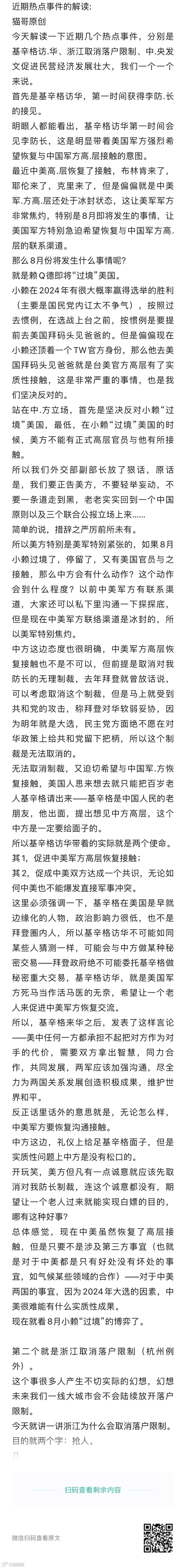 ——基辛格访华,浙江放开落户限制,发文促进民营经济健康发展,你想了解的最近时政热点都在星球有深度解读。
