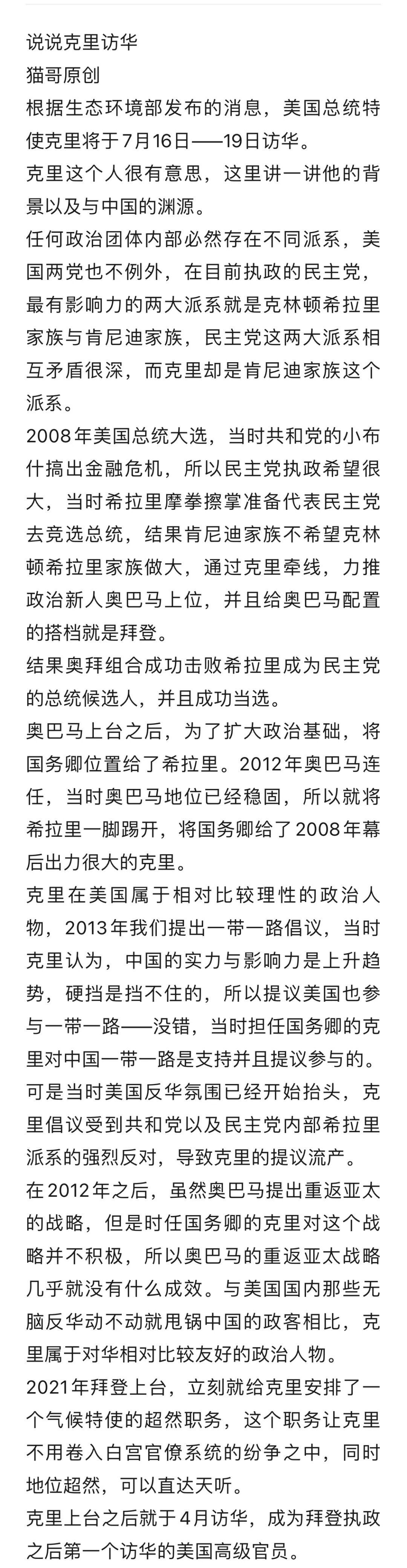 ——继耶伦之后,克里也准备访华了。这是个有意思的人,和大家讲讲他的背景以及和中国的渊源,个人感觉这次中美在气候合作事宜上有可能取得新的进展。