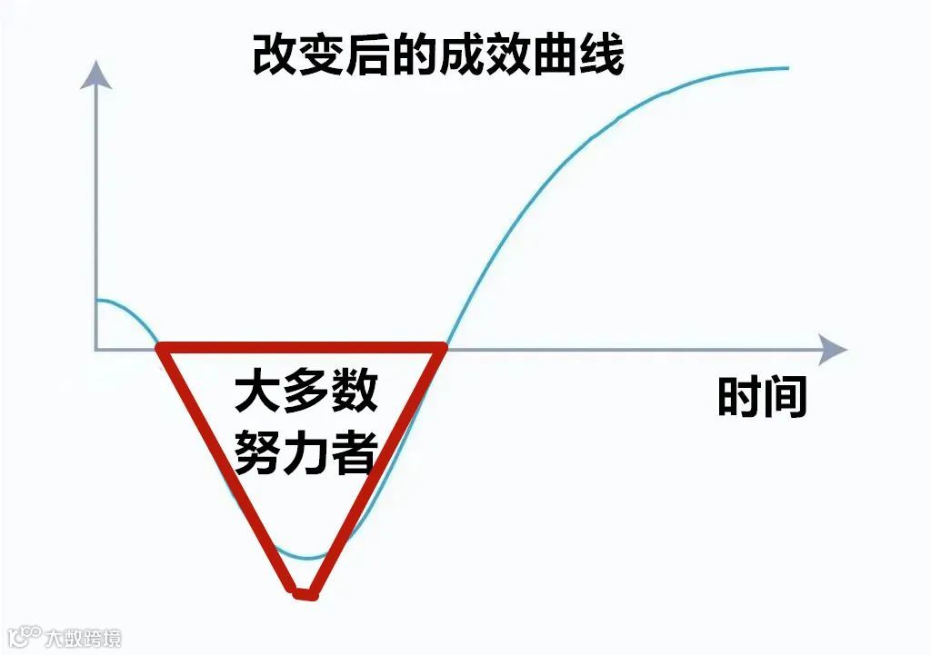 任何一个人,组织,国家,从做出努力进行改革到走向蒸蒸日上的过程无一例外的都会是上面这幅图。
