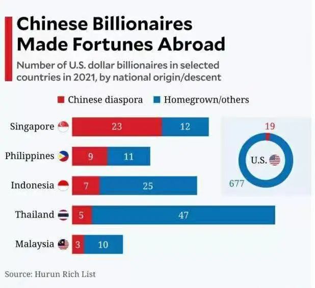 所以今年,胡润百富曾发布报告称,“世界上有34.6%的亿万富翁是华裔,这些中国的亿万身价商人主要散居东南亚,以新加坡为首。”